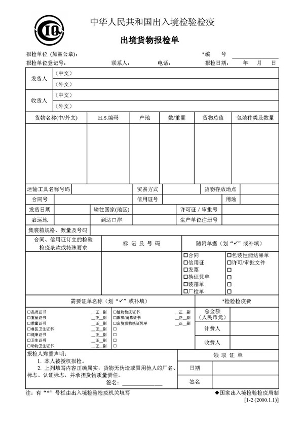 出境貨物報檢單 Export Application Form For Inspection