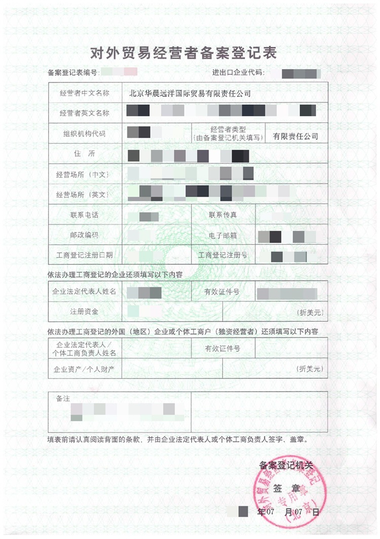華晨遠(yuǎn)洋公司,全程代辦對外貿(mào)易經(jīng)營者備案登記表、海關(guān)注冊等全套進(jìn)出口資質(zhì),十年代辦經(jīng)驗(yàn),專業(yè)誠信。有需要請隨時(shí)電話聯(lián)系010-84274255 ,010-84270941。